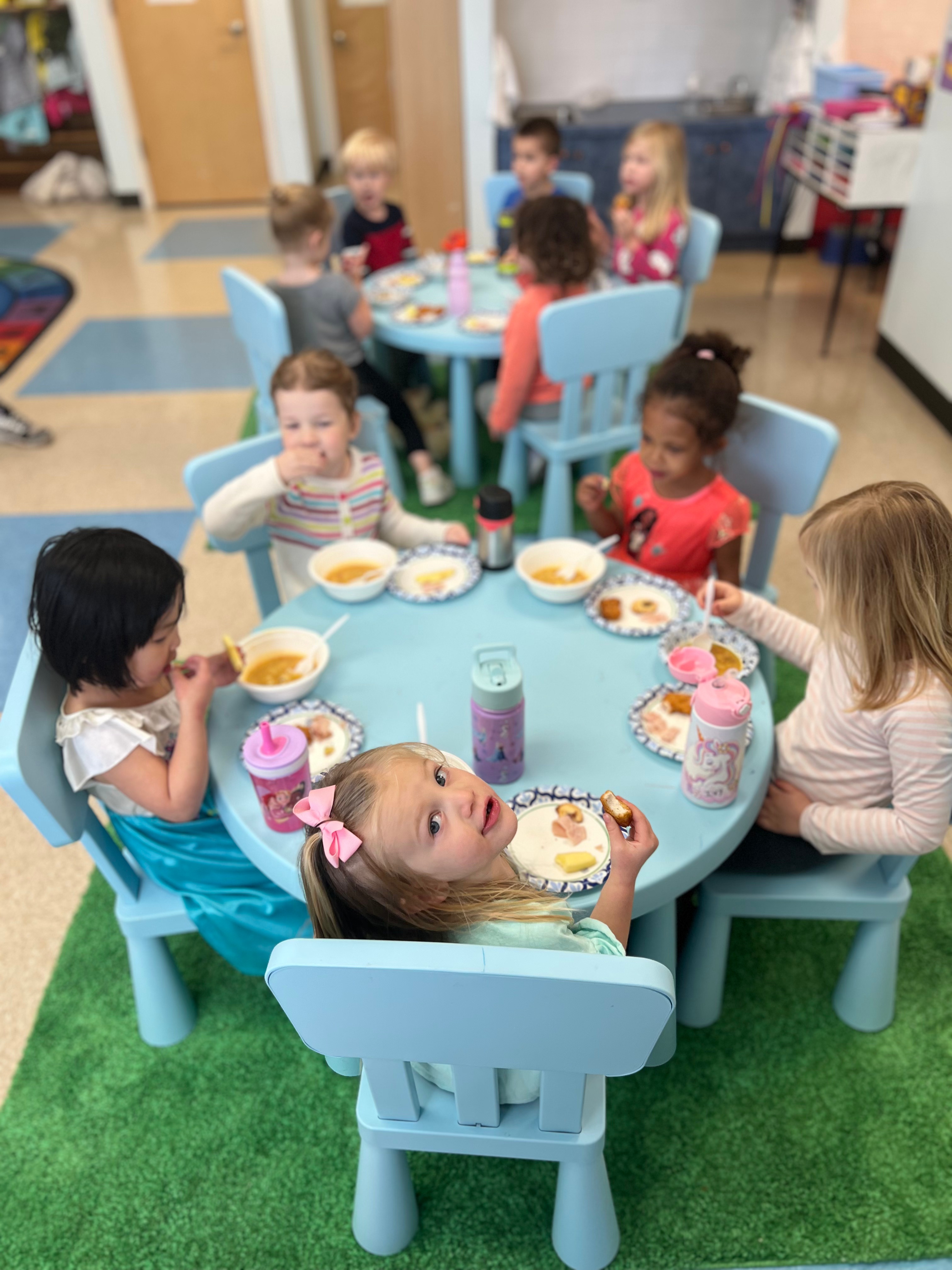 This year, the twos are following a Letter of the Week curriculum. They do crafts, sensory projects, cooking activities, science experiments, beginning writing practice, number awareness, and much, much more!